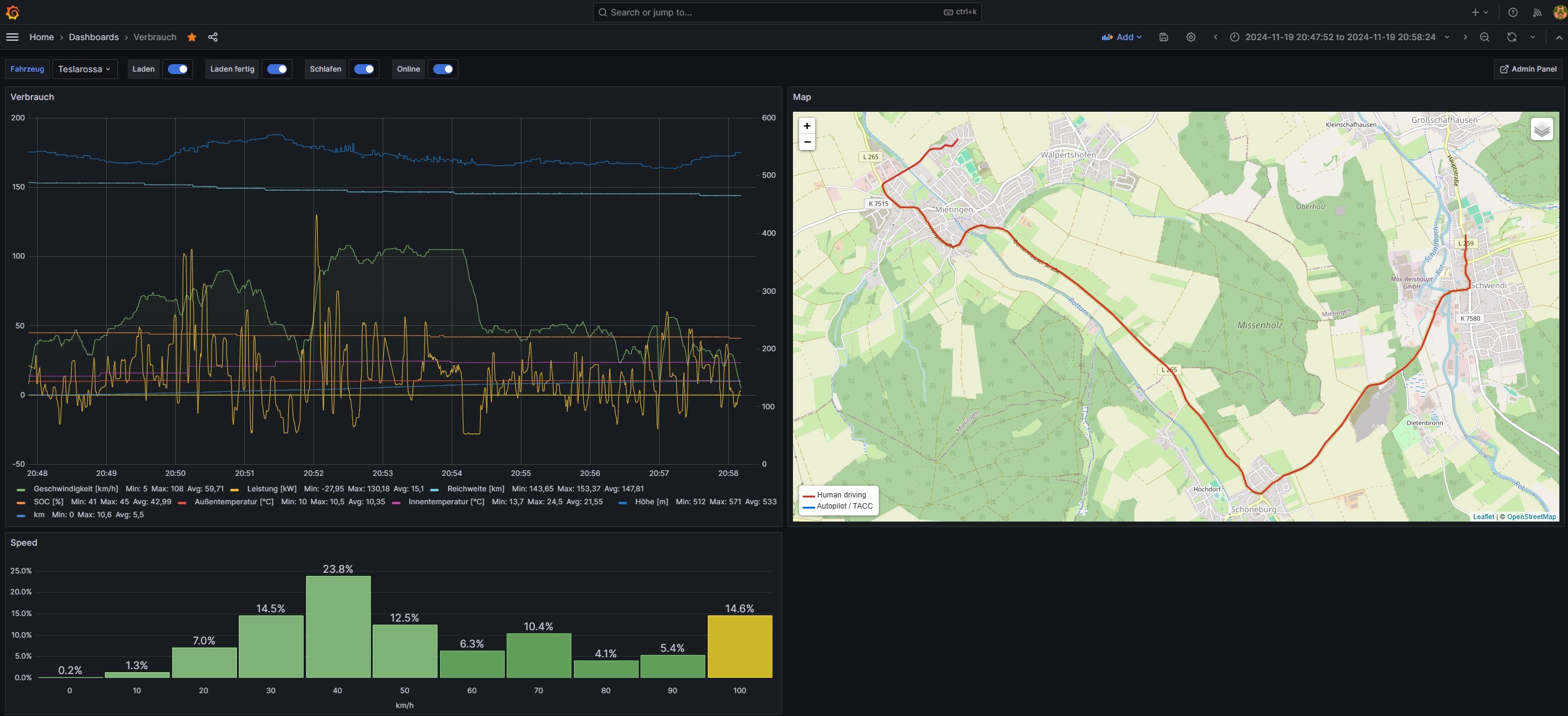 • Komplettes Tesla-Tracking: Überwache Fahrzeugdaten wie Ladezustand, Fahrstatus, Energieverbrauch und vieles mehr direkt über dein eigenes System.